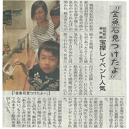 現地担当者の協力も得て、熊野市の平成26年度事業として石の上に金魚を描く企画展「夢の世界へ」が決定。
